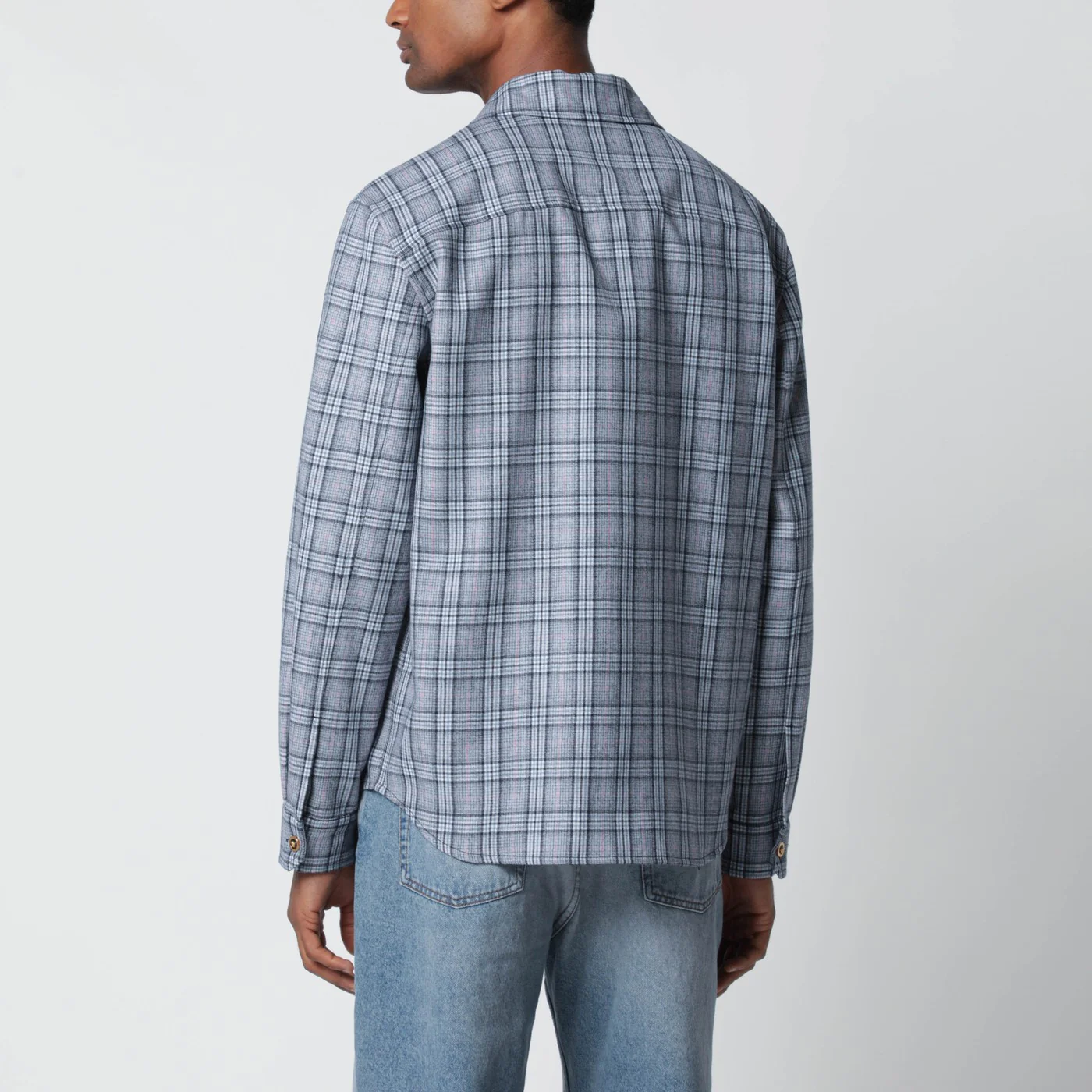 Camicia di Versace in flanella di lana azzurra a quadri