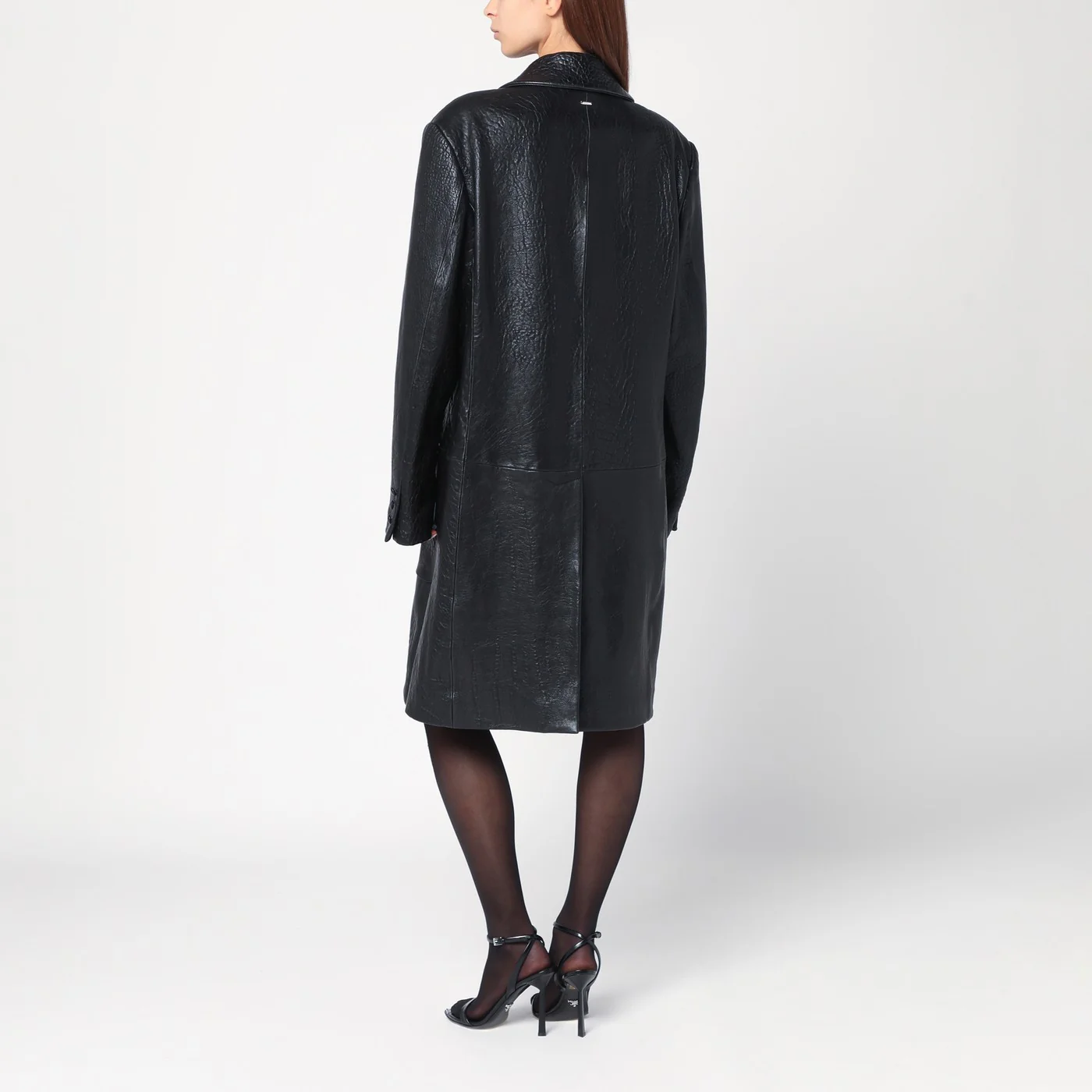 -70%Cappotto monopetto nero in pelleā