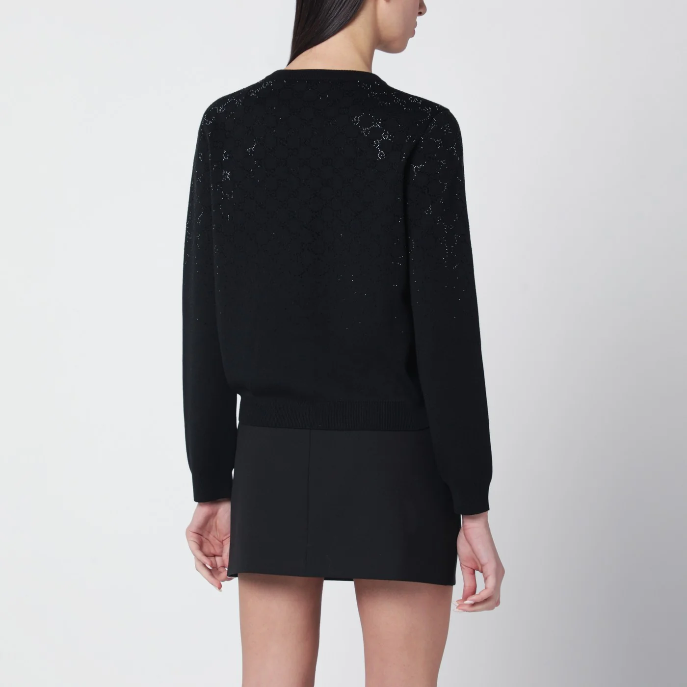 Cardigan nero con cristalli GG effetto sfumato—