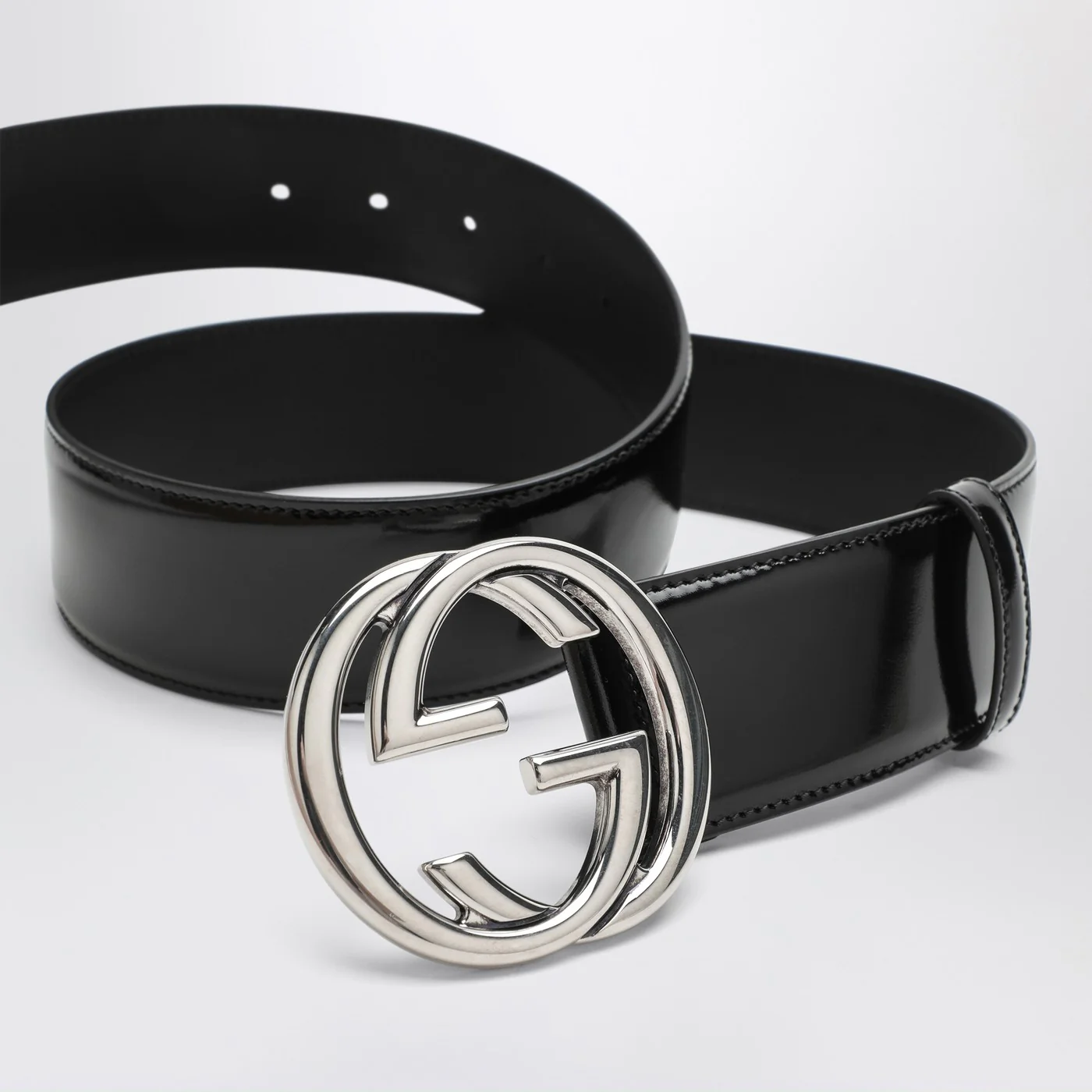 Cintura di Gucci in pelle nera, caratterizzata da misura regolabile e fibbia GG metallica.